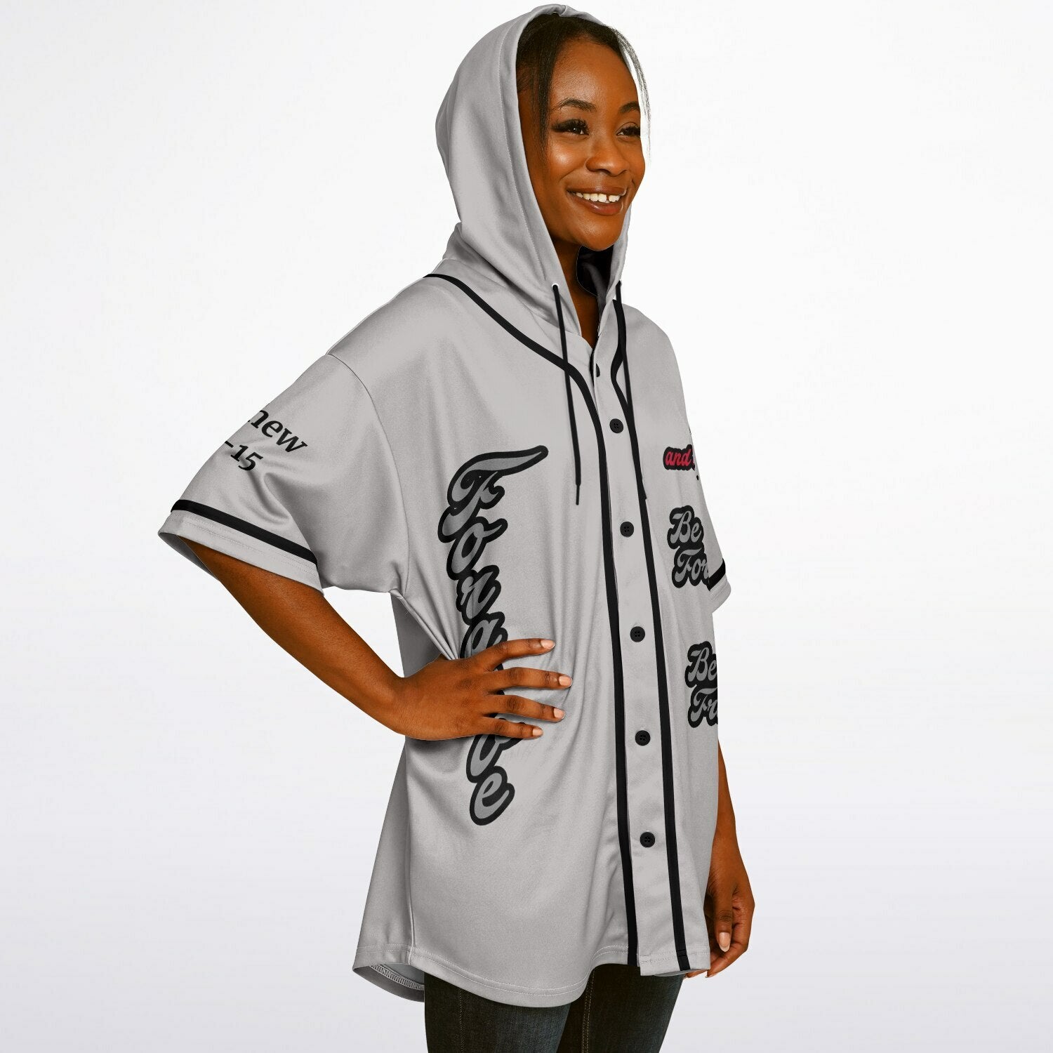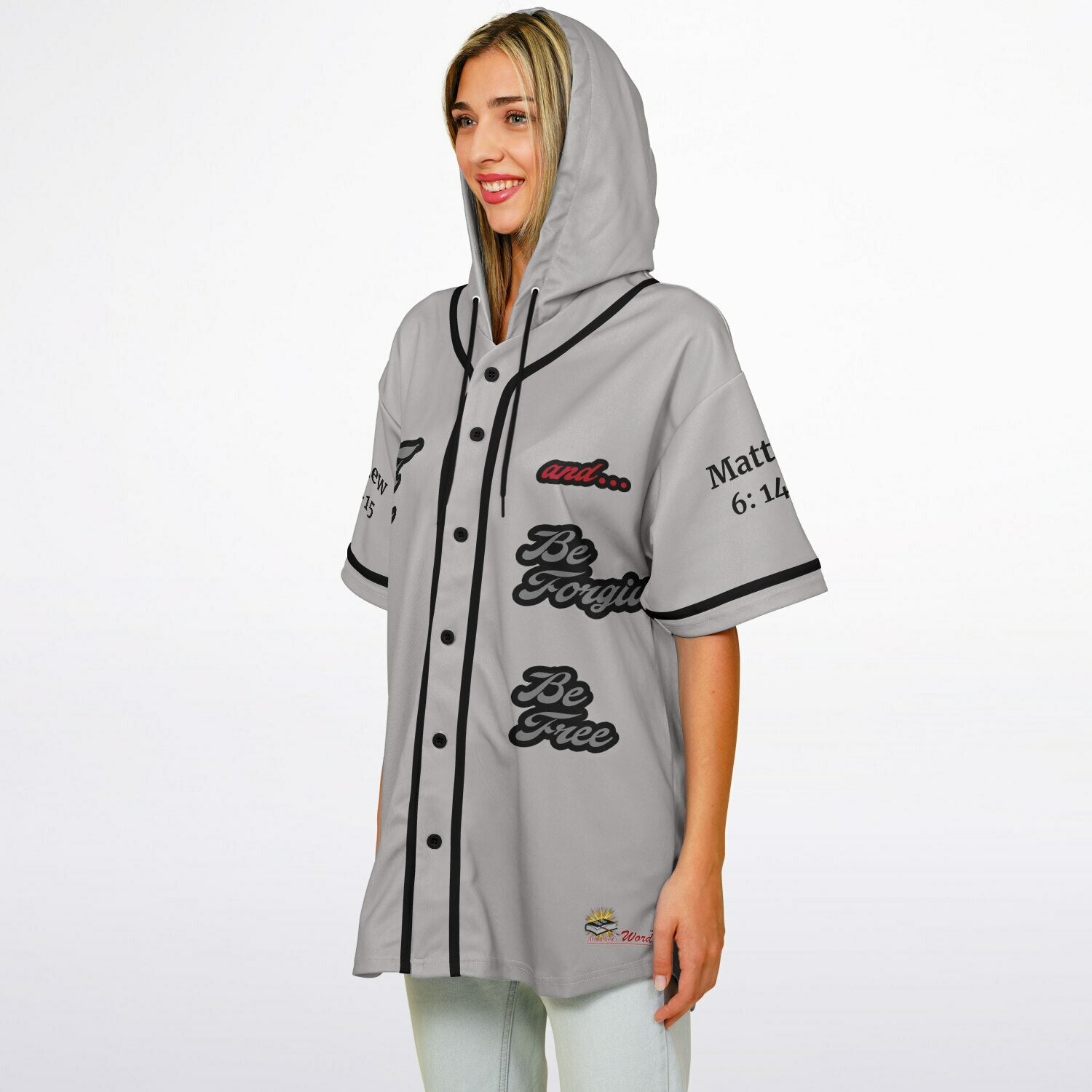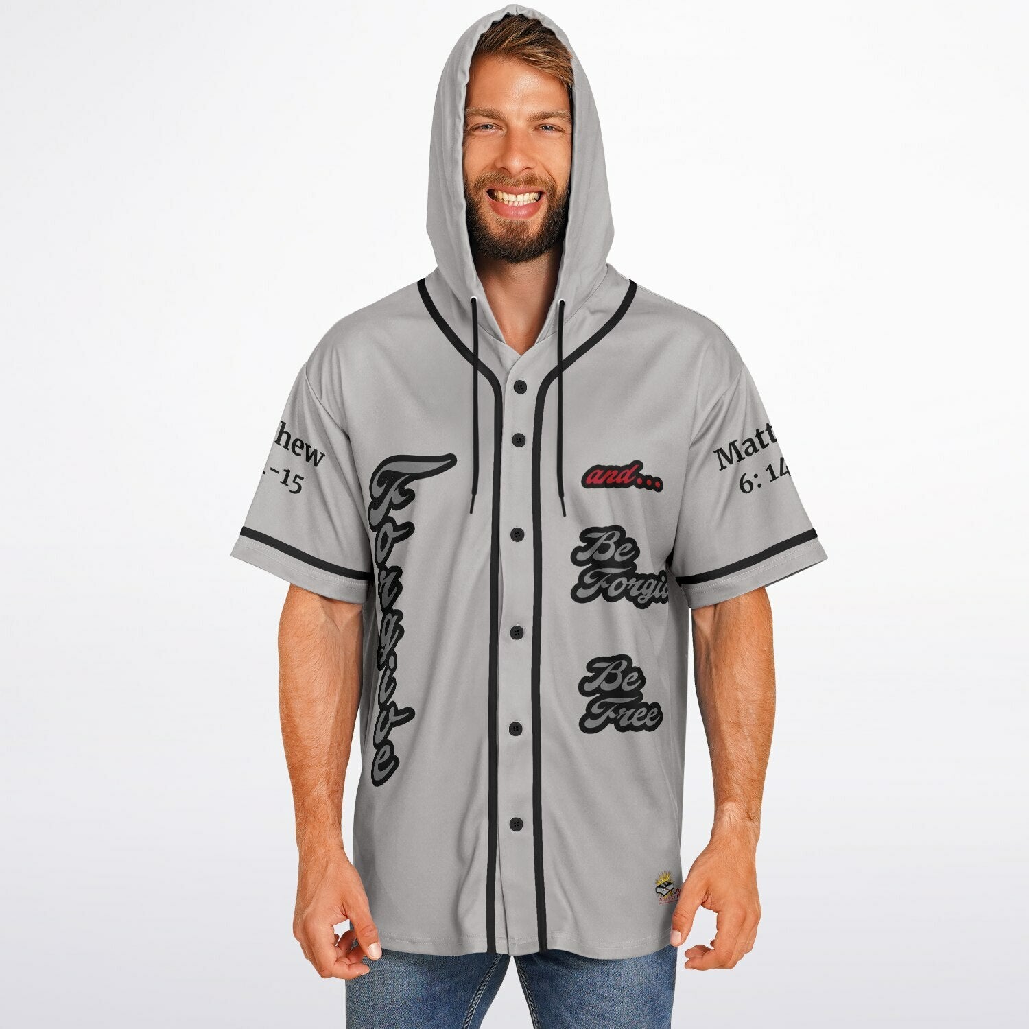 FORGIVE Grey - Unisex Hooded Baseball Jersey, Black Stripes