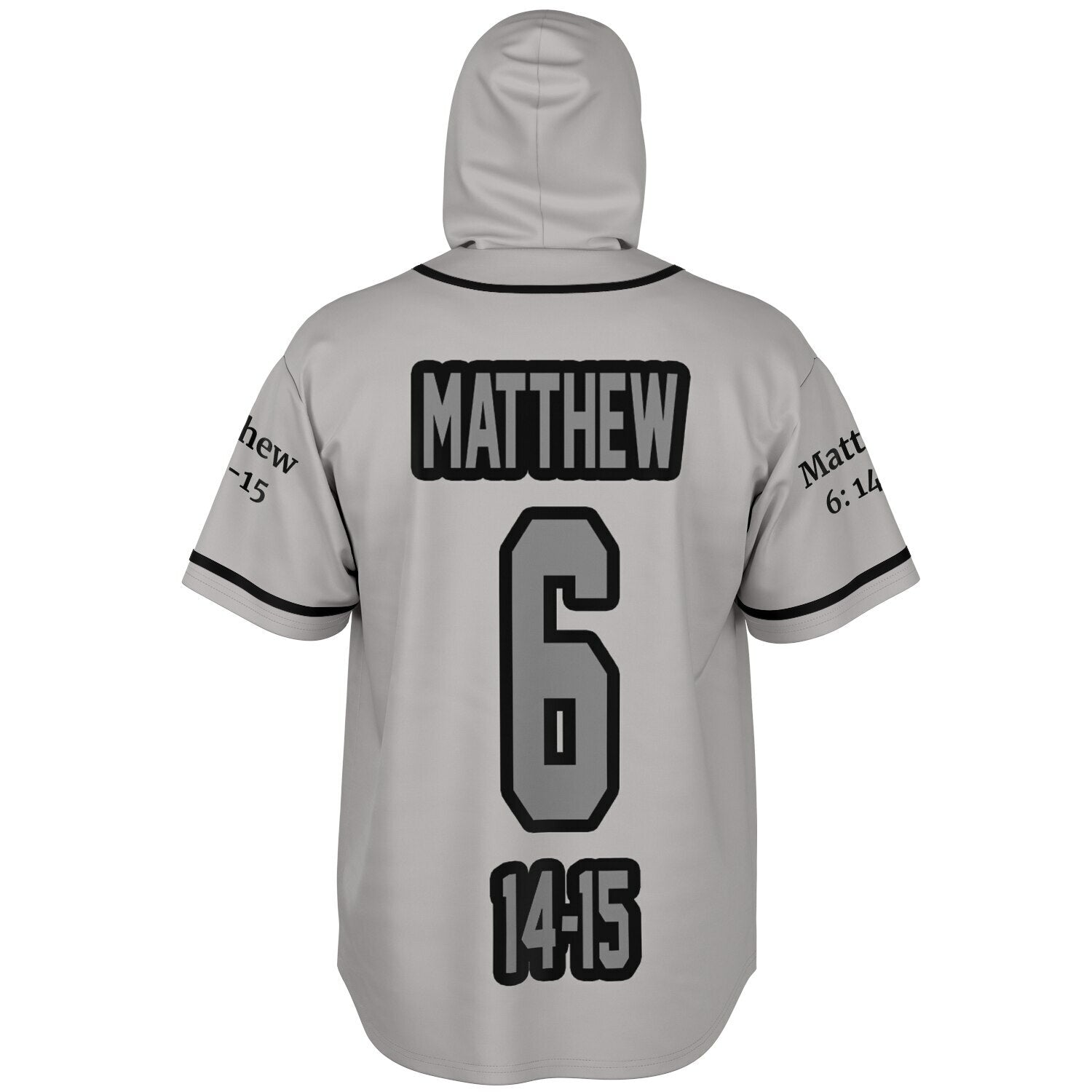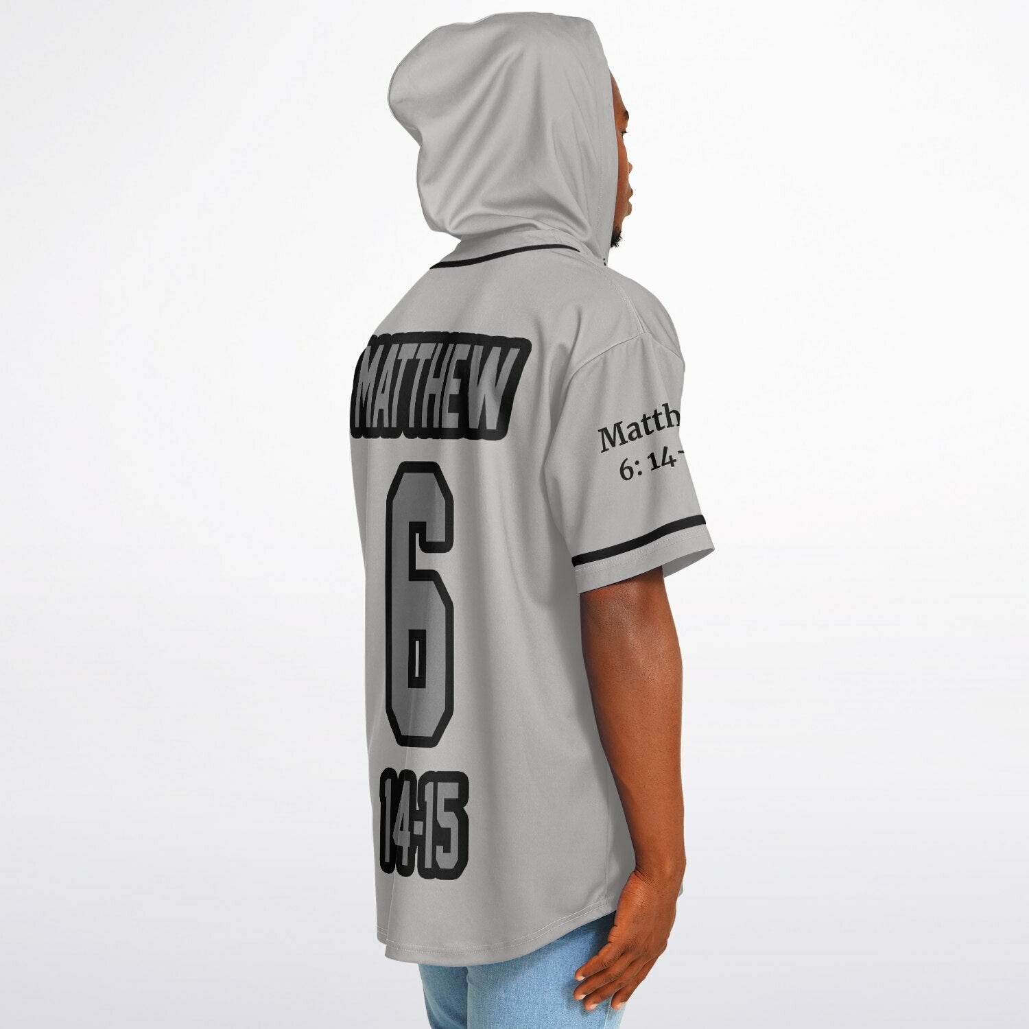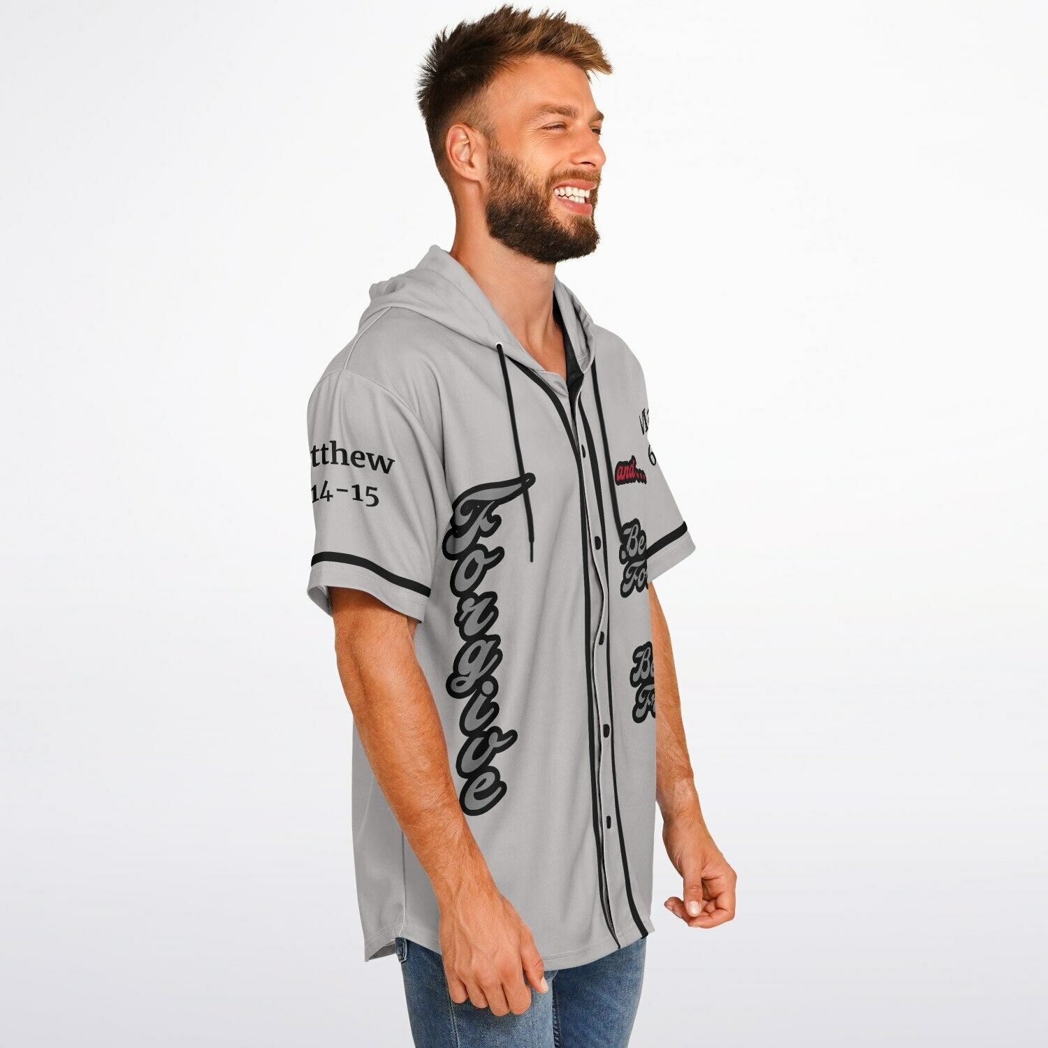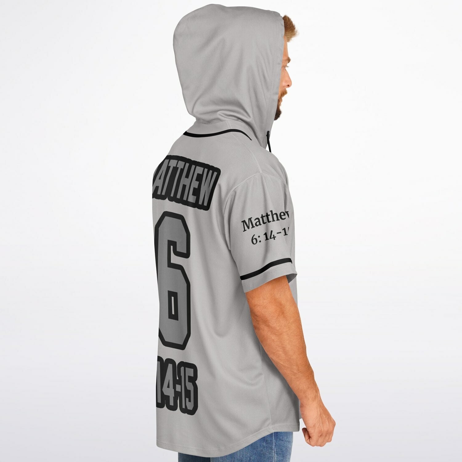 FORGIVE Grey - Unisex Hooded Baseball Jersey, Black Stripes