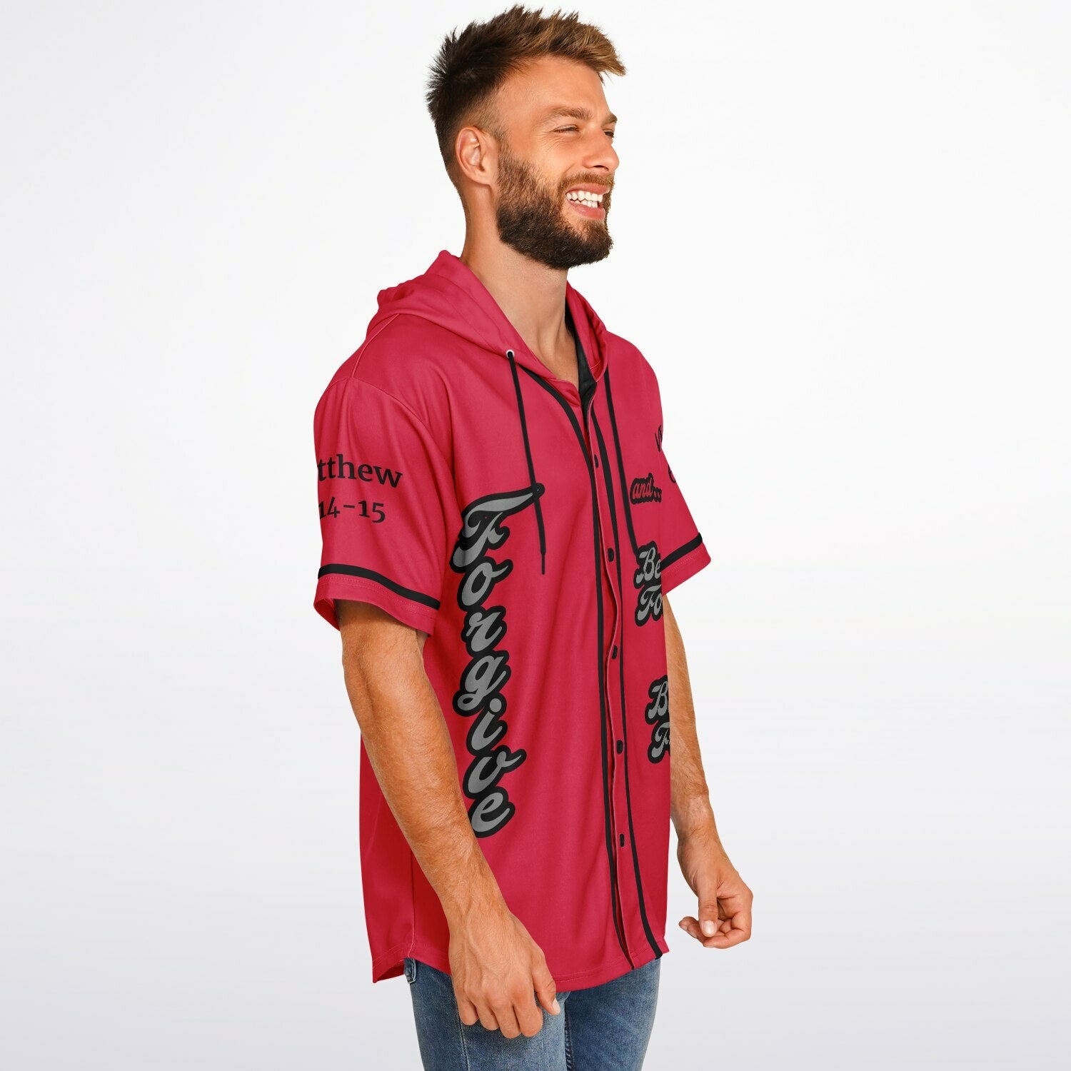Wearing this jersey reminds others and yourself about forgiveness – how humbling, but necessary! Seeing this jersey prompts others to remember God’s word on forgiveness. Matthew 6: 14-15 tells us “For if ye forgive men their trespasses, your heavenly Father will also forgive you: But if ye forgive not men their trespasses, neither will your Father forgive your trespasses.”(kjv) Get this jersey and remind others to forgive as their response reminds you to do the same.