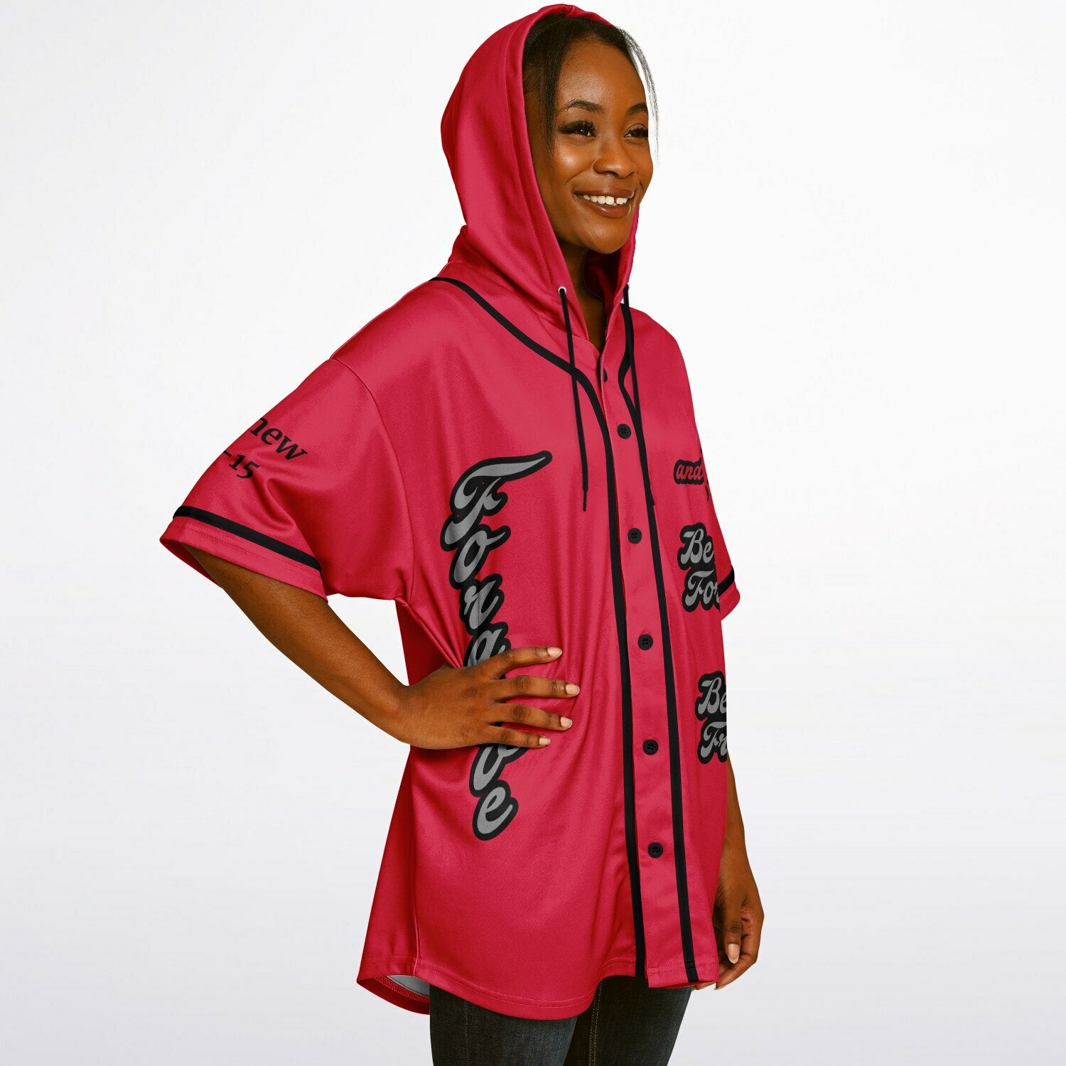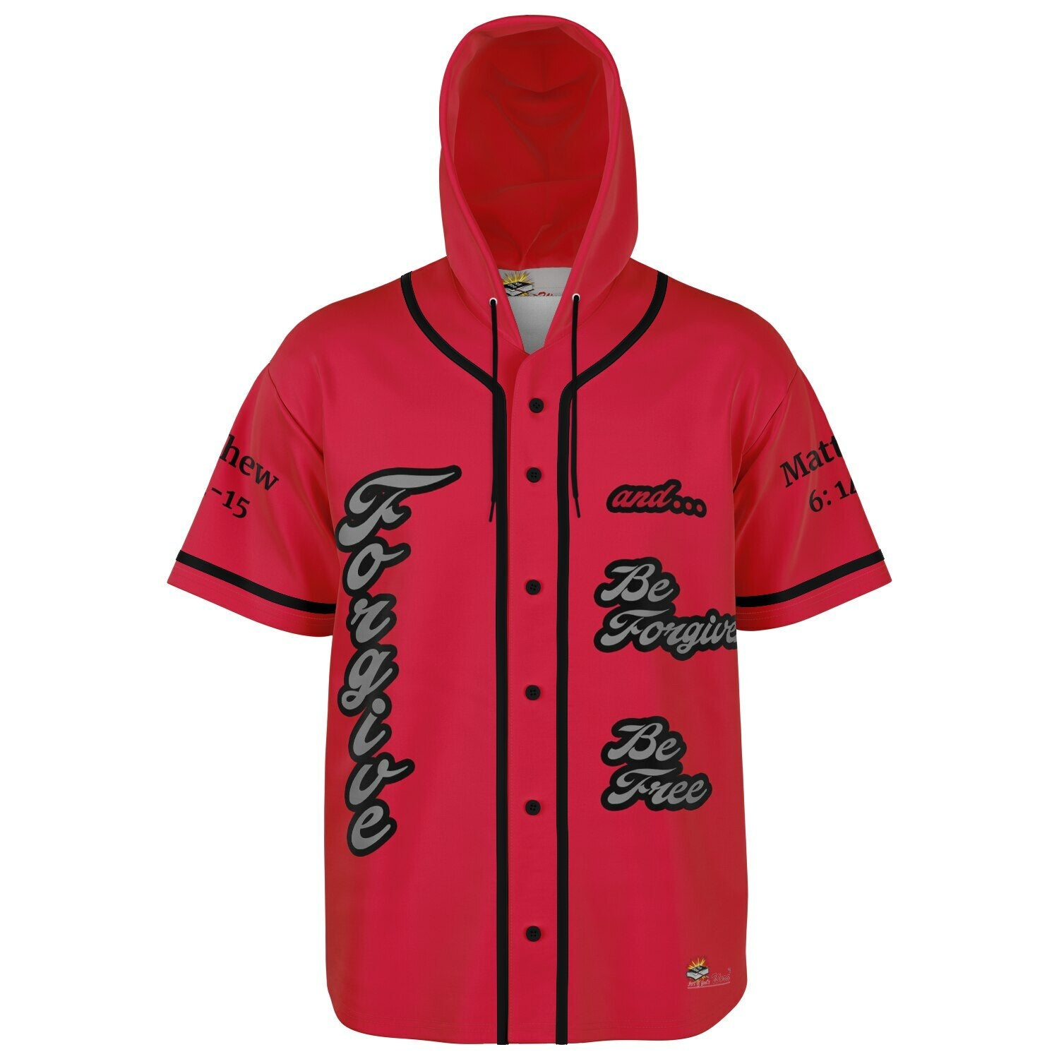 FORGIVE Red - Unisex Hooded Baseball Jersey, Black Stripes